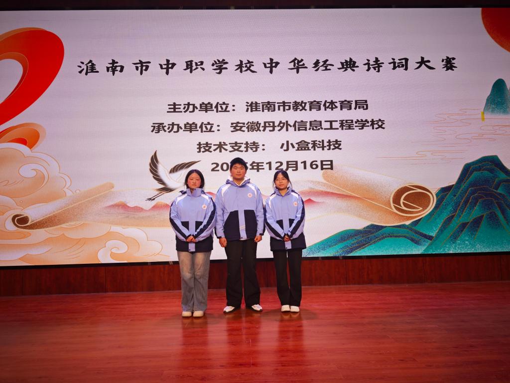 近日,由淮南市教育体育局主办的中职学校中华经典诗词大赛圆满落幕。安徽理工技师学院代表队凭借扎实的诗词功底与从容的赛场表现,在全市多所中职学校的激烈角逐中脱颖而出,最终郑可欣同学荣获二等奖、杜素琴同学荣获三等奖,彭胤祥同学荣获优秀奖,学院同时荣获优秀组织奖。